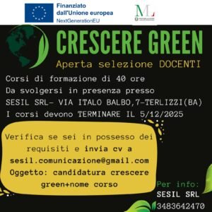I corsi di formazione, sono finanziati nell’ambito del Piano Nazionale di Ripresa e Resilienza (PNRR), Missione 7 – RepowerEU, Investimento 10 “Progetti pilota sulle competenze Crescere Green”, finanziato dall’Unione europea – Next Generation EU ,